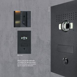 SFERA bietet eine Unmenge an Funktionen, die individuell – je nach Anforderung – kombiniert werden können. Es kann u.a. zwischen Audio- und Videoausführung (u.a. auch mit Night & Day-Kamera), 1- und 2-reihigen Ruftastenmodulen und einer Vielfalt an Zutrittssystemen gewählt werden, wie z.B. Kartenleser, Codelock oder Fingerprintmodul.